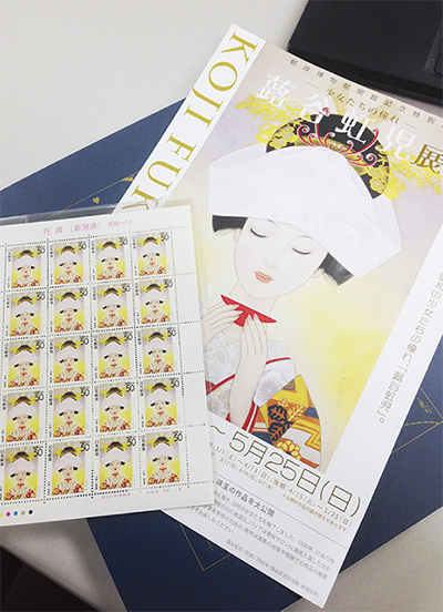 晩年はアニメーションや作家、画家としての活動に比重を置き、1968(昭和43)年には代表作『花嫁』を発表。1997(平成9)年に新潟県新発田市のふるさと切手に採用された。この切手人気が今回の郵政博物館での企画展のきっかけになったという。