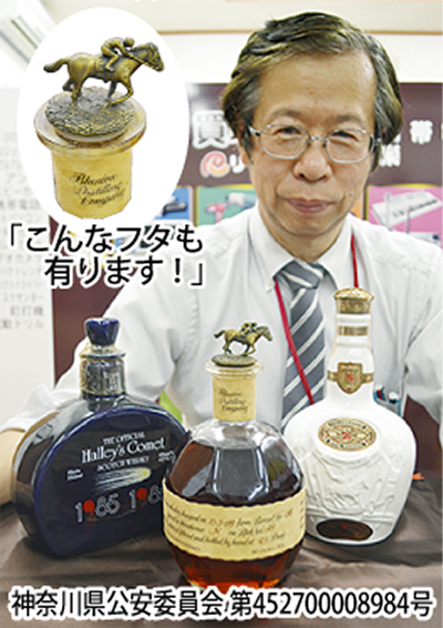 レミ・マルタンのルイ13世やヘネシーのエクストラは高値のつく可能性があるほか、写真のような珍しい容器入りのお酒も大歓迎だとか(ワインは買取り不可)。