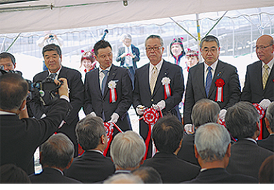 式典には(株)古川の関係者のほか、吉川伸治神奈川県副知事、間宮恒行大井町長、近隣の首長など約130人が出席。県西地域で初となるメガソーラー発電所の完成を祝った。