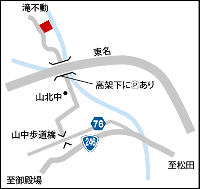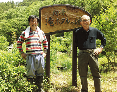 不動滝の滝つぼから水を引き、小川や池を作りカワニナを放流すると、09年から本格的にホタルが舞いはじめた。観察を始めた12年にはひと月に219匹の飛翔を観測。昨年は373匹に増え、知る人ぞ知るホタルの名所となった。町もこの取り組みを支援。中日本高速道路も6月は東名の高架下を駐車場として提供している。