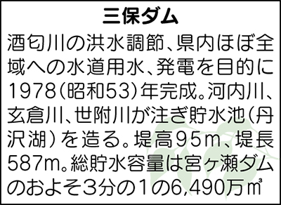 神奈川県内では、国が管理する宮ヶ瀬(中津川・宮ヶ瀬湖)とその下流にある石小屋、神奈川県企業庁管理の相模(相模川・相模湖)と城山(相模川・津久井湖)、三保ダム(酒匂川水系河内川・丹沢湖)の5カ所で共通仕様の「ダムカード」が配布されている。このカードの収集が愛好家らの間で全国的なブームとなり、三保ダムでも昨年春ごろから配布枚数が急増しているようだ。