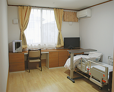 約50mの廊下や談話コーナーなどには、落ち着いた木目調を採用。窓からやわらかな日差しが注ぐ全室個室の居室には、車イスでの生活を想定した、広めに設計された洗面スペースを確保。電動介護ベッドをはじめ、スプリンクラー、緊急通報装置を設置、居室と食堂には床暖房も完備され、入居者の”暮らしやすさと安心”に配慮された快適な空間となっている。夫婦での入居が可能な2人部屋も、2部屋用意されている。