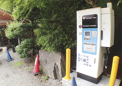 山北町、中川温泉の旅館「信玄館」に25日、電気自動車に電力を供給する急速充電器が設置された。町内で公共インフラとして充電器が設置されたのは初めて。利用登録すると専用カードが発行され、クレジット決済で充電できる。料金は1回あたり数百円だという。