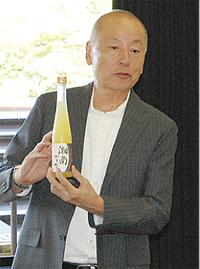 大井町の老舗酒蔵「井上酒造株式会社」(井上寛代表取締役)が5日、同町柳のいこいの村あしがらで、国の中小企業支援事業を活用して開発した「湘南ゴールドリキュール」の完成発表会を開いた。