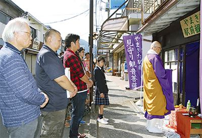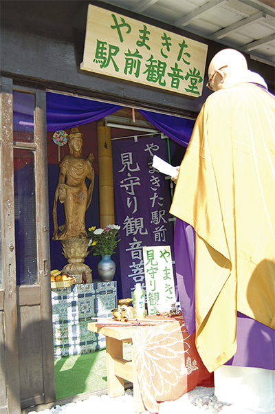 山北駅前の商店街にこのほど、「やまきた駅前観音堂」がお目見えした。10月24日に開眼法要が営まれ、25日午後に開帳された。