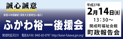 開成町はこの3年半で人口427人(2・5%)・世帯数(5%)増加しました。これも先人の努力と町民の皆さんのご理解ご協力の賜物です。開成町は益々元気になっています。