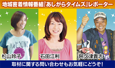 同社では大井町と松田町の契約回線で視聴できる地域密着番組『あしがらタイムズ』(湘南チャンネル002ch)を放送中。男女3人のレポーターが地域を紹介する超ローカル番組。こちらは取材先も募集中。