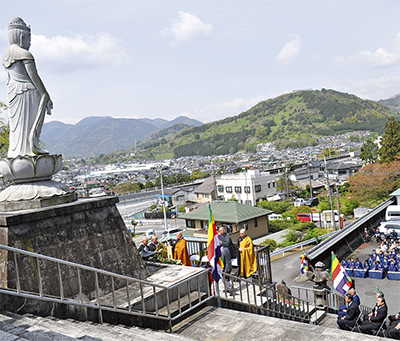 松田町で葬祭業を営む市兵衛の杉山邦夫会長は「山北町を見下ろせるこの場所で、大きい像を建てたかった。もう事故を起こさないでほしいという気持ちも込めて犠牲者の供養と一緒に安全運転祈願式も行っている」と話した。