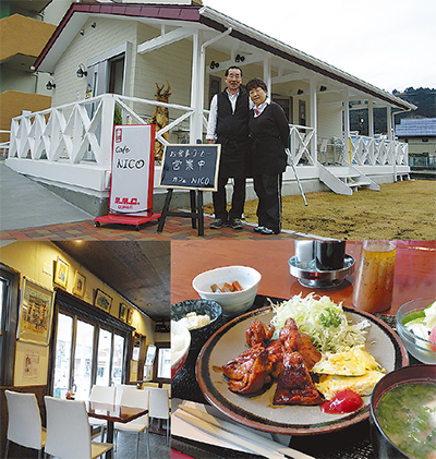 この会社で社長を務め自ら家賃を支払いテナントとしてカフェを営業するのが川本渉さん(67)・しげ子さん(69)夫妻=写真上だ。