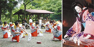 相模人形芝居足柄座(玉野美津子座長)は、県無形民俗文化財。斑目(まだらめ)人形と呼ばれる人形芝居で江戸中期から伝わる。1956年を最後に中断したが65年に地元婦人会らが再興した。