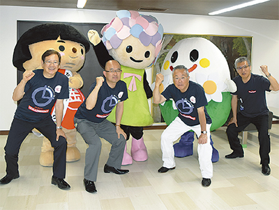 横浜市の神奈川県庁で10日、「チャレンジデー2016」(5月25日)の決起集会が開催され、開成町の府川町長、大井町の間宮町長、山北町の湯川町長、松田町の本山町長ら参加する県内3市7町の首長らが意気込みを語り、各市町の公認キャラクターも応援に駆けつけた。