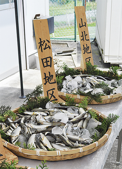 漁協では4月から5月21日までに2・3トン(約16万尾)を放流し、7月までさらに2・2トンを放流する。今年は10月14日までのシーズンで昨年より8千人多い3万人の釣り客を見込んでいる。酒匂川でのアユ釣りには遊漁料が必要。 問い合わせは漁協【電話】0465・37・4277へ。
