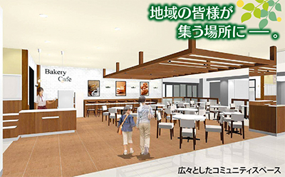 店内には40席を超えるコミュニティスペースを設置。店内で買った商品をイートインでき、お年寄りから子どもまで、地域の団らん場所として活躍しそうだ。
