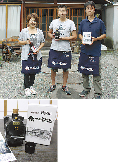 大正から昭和に旧東海道本線で活躍した大型蒸気機関車「D52」を模した陶器のボトルに山北町の酒蔵、川西屋酒造店の純米酒丹沢山「秀峰」をつめた。