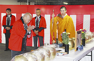 17日には、だるま碑近くのTSUTAYA大井町店の駐車場で供養祭が行われた。供養祭では最明寺の加藤宥教住職の読経の後、参加者が線香を手向け、交通安全を祈願した。田嶋顧問は「供養祭を40年間1度も休むことなく続けられたことをうれしく思う」とあいさつ。来賓として参加した松田警察署の鎌田耕造署長は「国道255号線では、平成7年から20年以上死亡事故が起きていない。だるま碑の御利益もきっとあるはず」と話した。