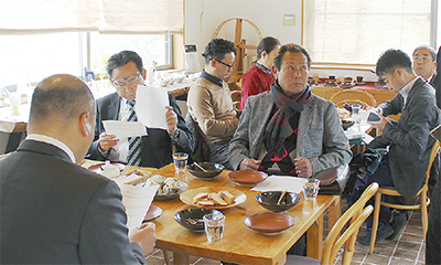 この日は、松田町や県、松田町観光協会の代表や学識者、民間人らでつくる推進協議会のメンバーが完成に近づいたレストランを見学。寄のカフェ「荷風」(山本晋平代表)では、山本代表らが考えた提供メニューの試食をした。