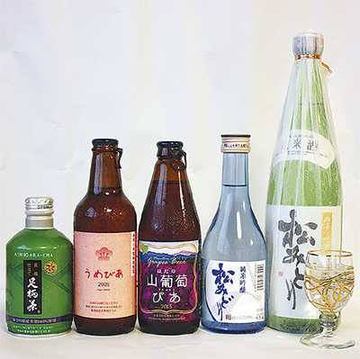 松田町には日本酒の「松美酉」(中澤酒造)、地ビールの「足柄ハッピーモルト」(足柄地ビール)、「足柄ハッピーモルトうめびあ」(同)、「CITRUSびあ」(同)など酒類のほか、「足柄茶」(JAかながわ西湘)、「ほうじ茶」(同)、「梅の風」(同)、「みかん畑」(同)など、”町産”の飲料品がある。