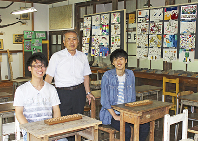 イメージは川澄さんが子どもの頃に体験し、館長を務めた瀬戸屋敷で再現した「緑陰こども会」。「学年を問わず子どもが集まり、近所の大学生が宿題を教えてくれた雰囲気」の再現をめざし、手始めに福沢小学校に協力を仰ぎ、児童の絵や習字の作品を集め教室に展示した。