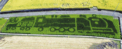 JR御殿場線谷峨駅近くの田んぼに、山北を象徴する蒸気機関車D5270の田んぼアートが出現した。