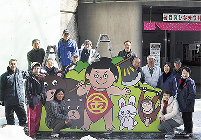 昨年夏ごろ、汚れが目立つ外観を見かねた元市議の上野スズ子さんらが発起人となり3カ月間で約20万円の資金を集めた。2月17日から始まる「森のひなまつり」を前に南足柄市の代名詞ともいえる「金太郎伝説」をPRする幅約2メートルの看板を制作した。