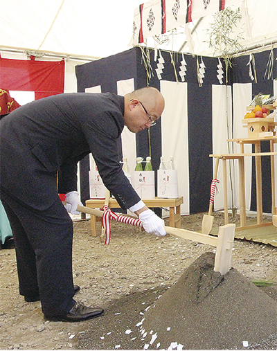 起工式で本山町長は「入居者に松田町に定住していただくためにも、地域に長く愛され長く使える建物にしたい」と期待を寄せた。