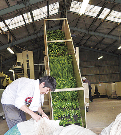 収穫した茶葉はすべて寄の弥勒寺茶業組合(熊澤清組合長)が運営する緑茶工場へ持ち込んで荒茶に加工して、藤沢市内にある自社工場に運び製茶する。