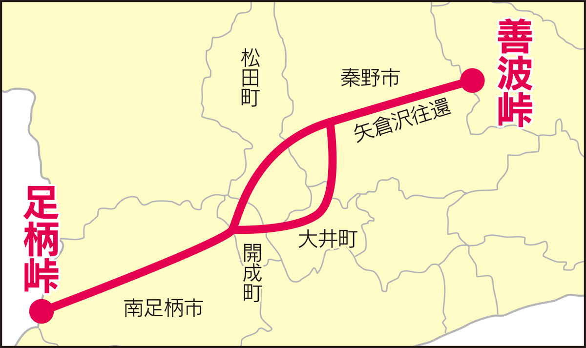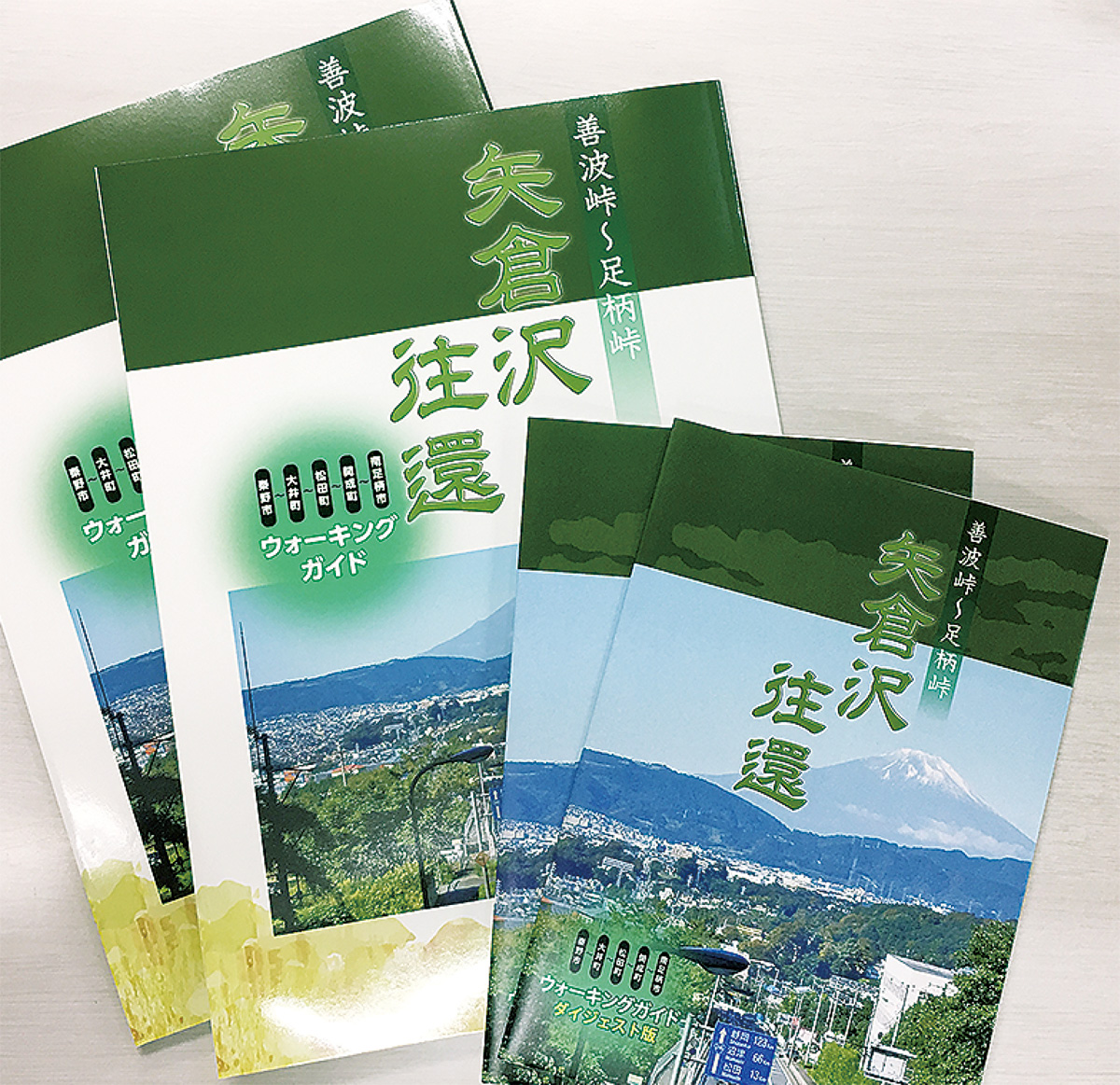 善波峠から足柄峠の見所を紹介する散策案内書『矢倉沢往還』(A4判60頁)がこのほど完成した。縮刷版地図と同時に刊行された。7月6日(金)から各1千部限定で無料配布される。5年の調査を経て2017年度に秦野市を含む矢倉沢往還の地元2市3町の専門職員らが関与。南足柄市の笠間吉高さん、大井町の内田憲治さん、松田町の草門隆さん、開成町の久保田和男さんがそれぞれ地元の見所を執筆した。