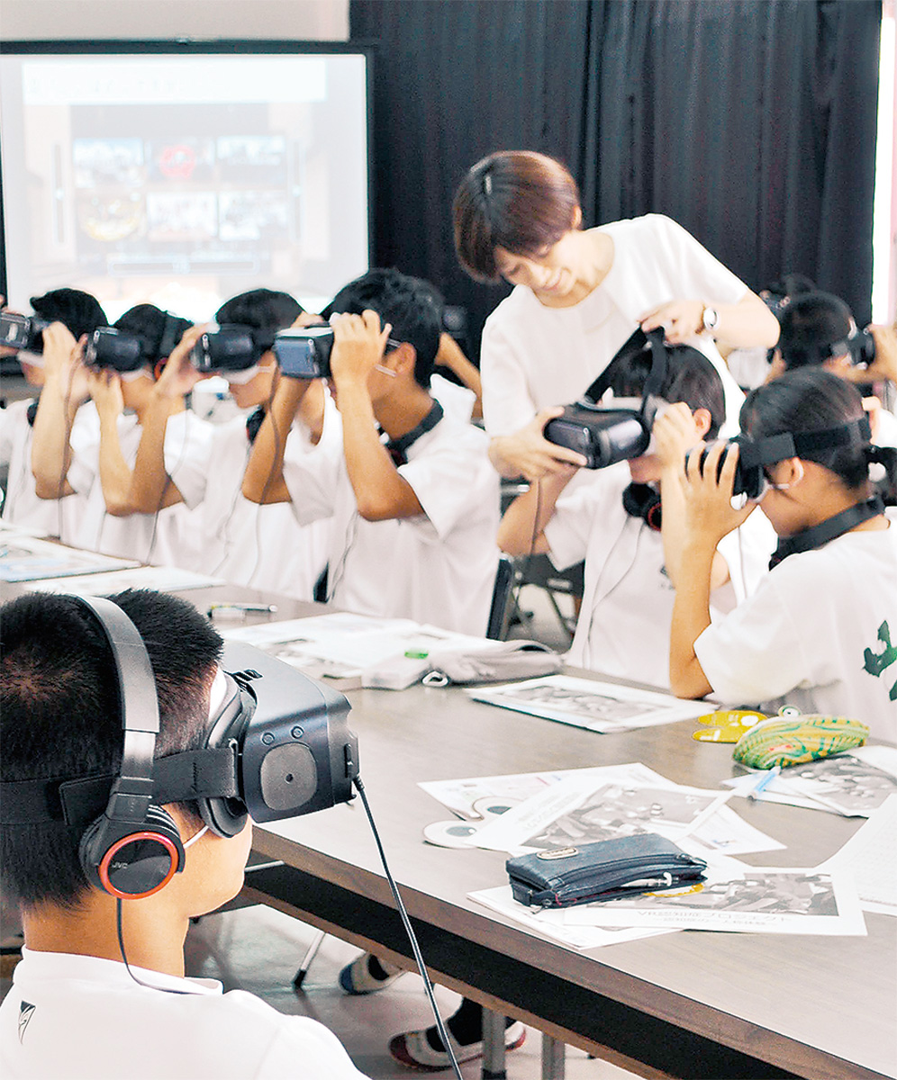 同社のVR体験は2016年から年間約300回のペースで実施。全国各地から問い合わせがあり来年1月まで予約で一杯という。黒田さんは「他人事として見ていることを一人称で体験すると全く違って見える」と生徒たちに語りかけていた。