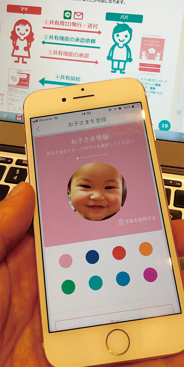 このアプリは、母子健康手帳の手書きの記録をページ撮影して専用のアプリを使用して送信すれば3日程度でアプリに同期できる。低出生体重児の子どもの修正月齢グラフにも対応できるため、母子手帳を開くことをためらいがちな母親にも配慮している。