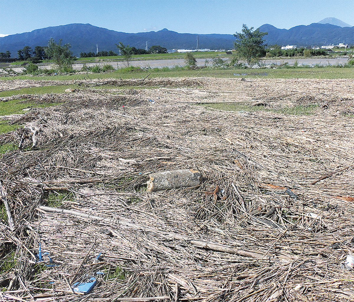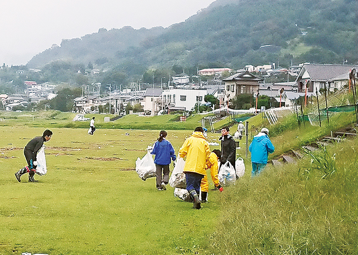 台風が通過し、水がひいた翌日の2日に、町長や町職員25人が広場に残ったゴミなどの除去作業にあたったが作業が難航したため、町は防災無線やホームページ、ツイッターでボランティアを募集。立花学園の生徒やアシガラマルシェの関係者ら10人が作業に参加したという。