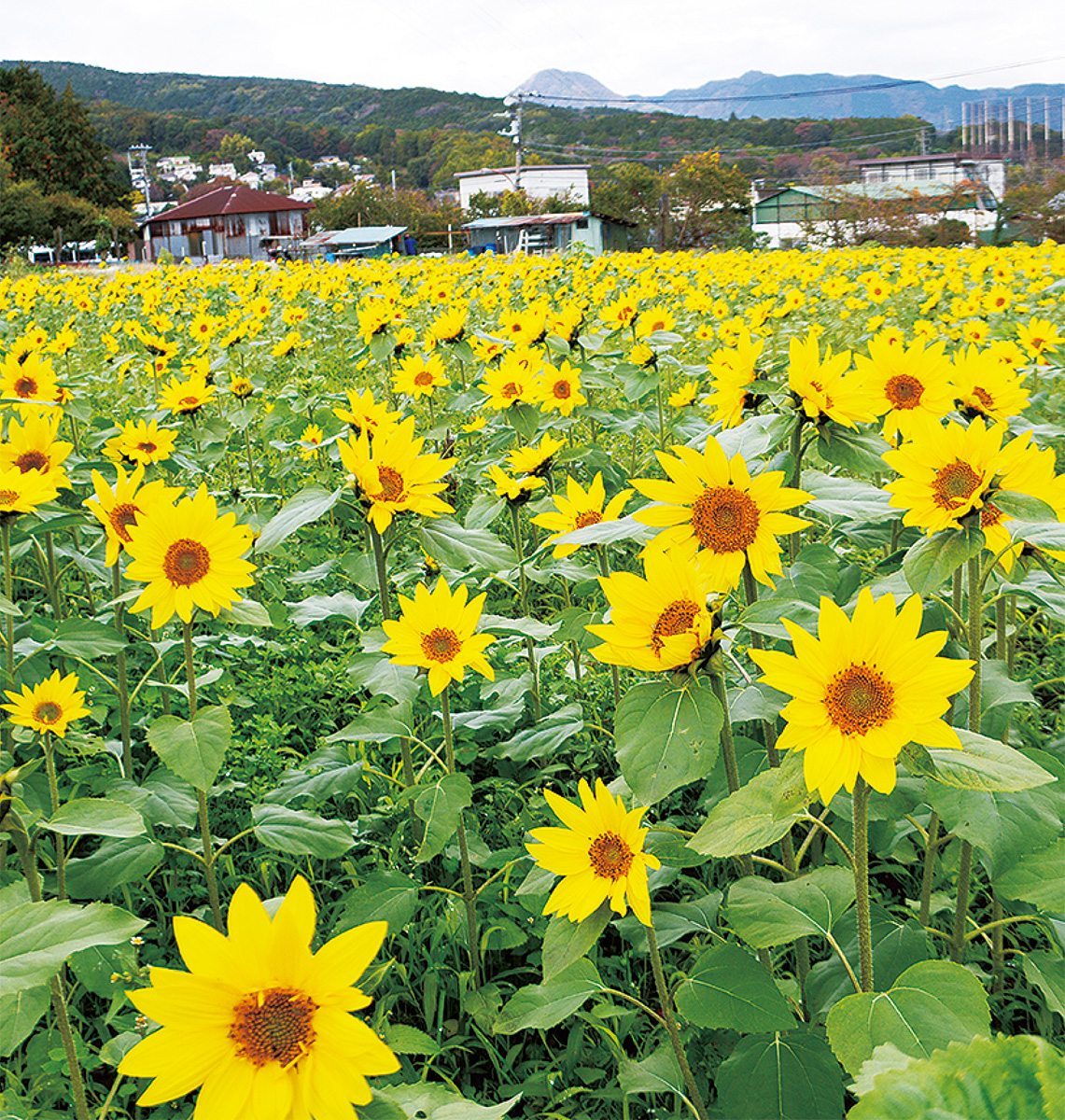 緑肥用の夏りん蔵という種類で、9月30日に種を撒いた。寒さで生育が抑制されるため夏に咲くヒマワリに比べて小ぶりで、背丈は70cmから1m。農園では開花時期をずらし3つの畑で夏りん蔵を育成しており、最後の開花を観賞できる。11月24日(土)、25日(日)、27日(火)は野菜直売や切り花販売もある。(問)古屋さん【携帯電話】090・7849・9200。