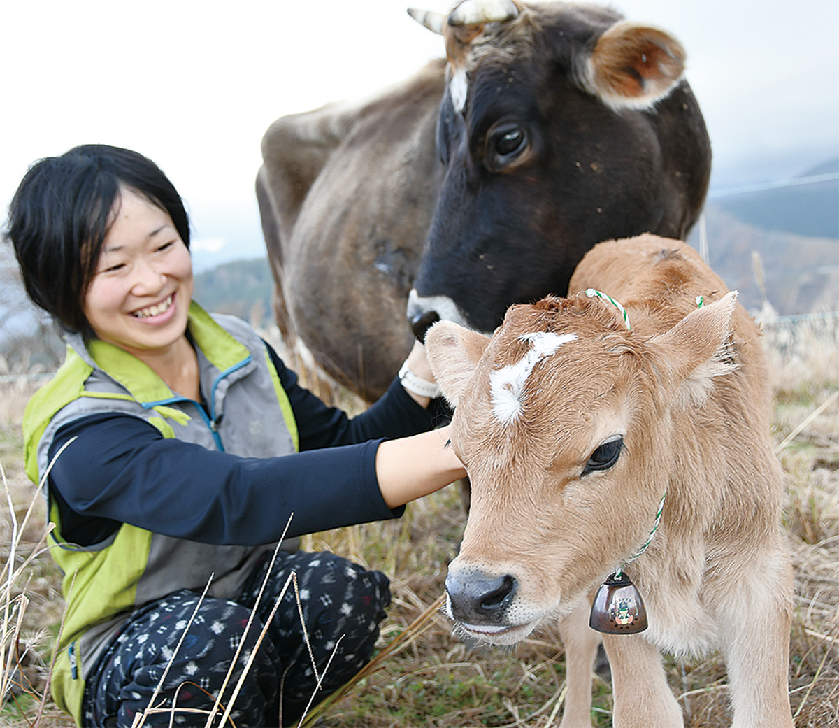 山地酪農は牛を山に放ち草を自由に食べさせ、牛の糞尿をたい肥に山の代謝を維持、改善させるのが特徴。出産前や子育てに余った乳を搾乳して加工品や牛乳を生産するため、環境配慮や健康志向の高まりなどで注目を集めている。
