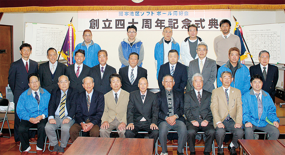 南足柄市岡本地区で1978年に発足した岡本地区ソフトボール同好会(高橋修司会長)がこのほど、創立から40周年を迎え、11月25日に関係者が集まり山崎公民館で記念式典を開いた。
