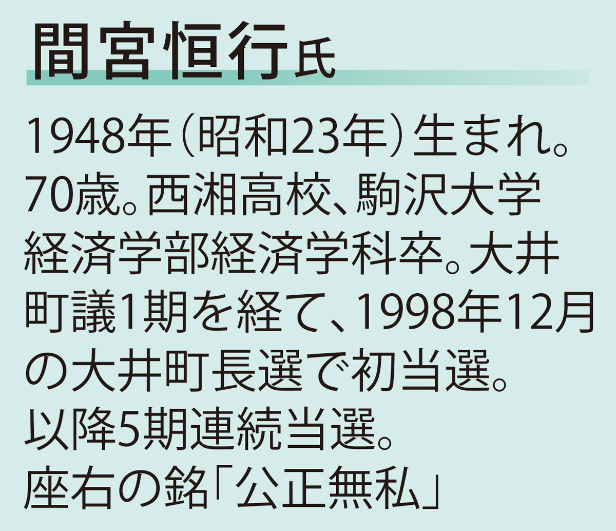 5期20年にわたり町長として大井町政を担われ、12月21日の任期満了をもって退任される間宮恒行町長に退任の寄稿をお願いしました。