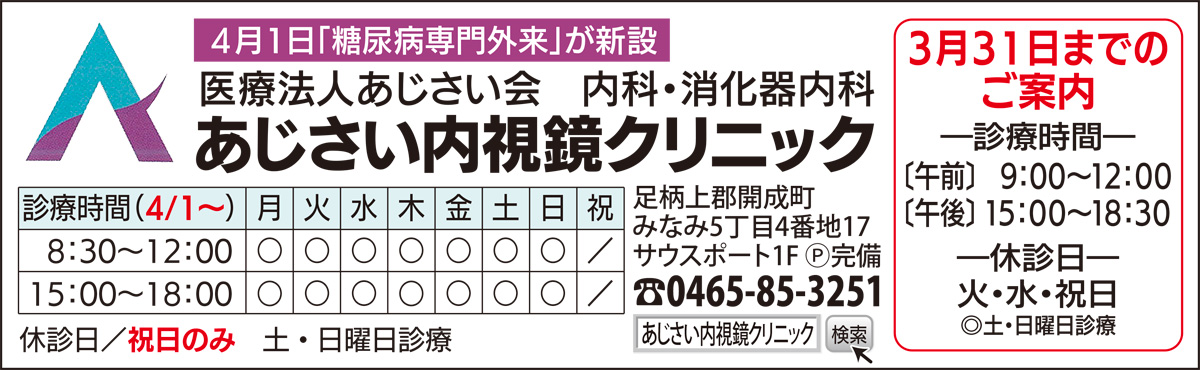 誰もが利用できる1階の『あじさい内視鏡クリニック』(高田龍介院長)に4月1日(月)から“糖尿病内科”が加わり、「糖尿病専門外来・消化器専門外来・内視鏡専門外来・一般内科診療」の新たな診療体制になる。