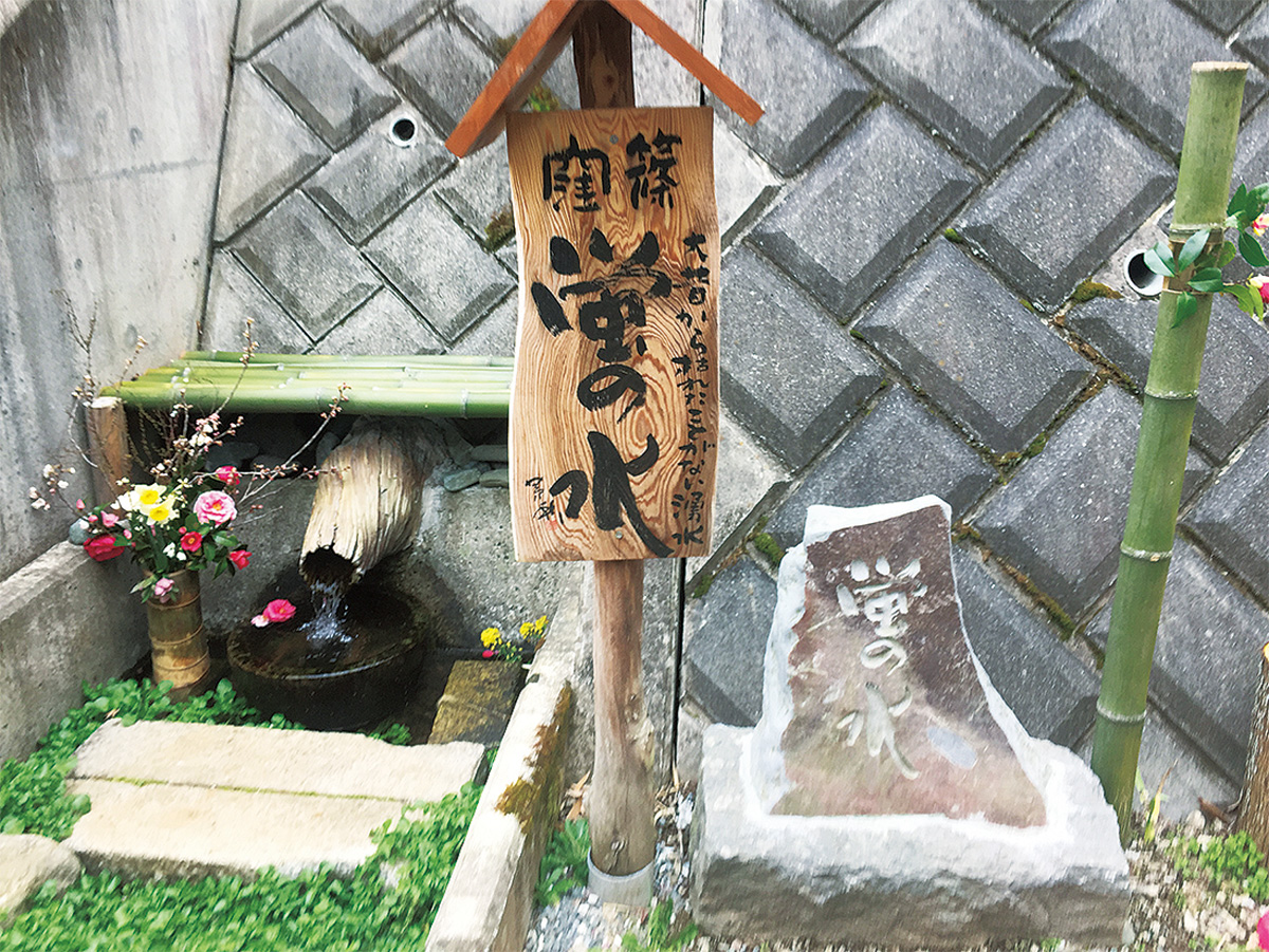 場所は中村川上流の篠窪渓谷入口のハイキングコース脇で、篠窪地区東の外れ。湧水は目の前の中村川上流に流れ込んでいる。陶芸家の志村正之さん作の陶器による取水口や、書家の中原茅秋さん揮ごうの「蛍の水」という立て看板、さらには近隣住民による石碑も置かれている。