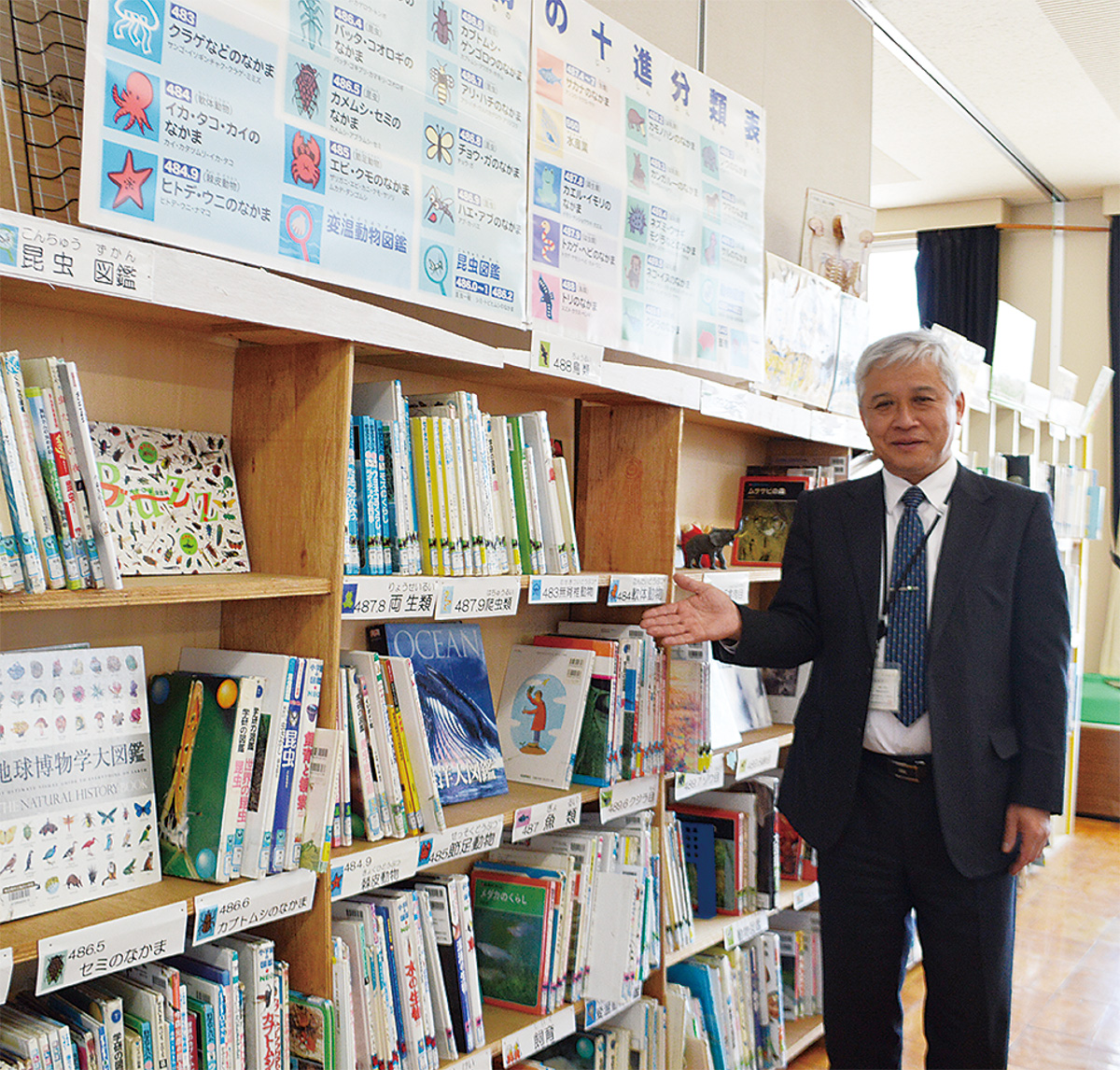 地域の民間企業も学校の取り組みを応援し、多くの図書を寄贈。休み時間の図書館は利用する子供たちで溢れ、貸し出し冊数も増えているという。「受賞の知らせを聞き驚きました」と話す水野校長。