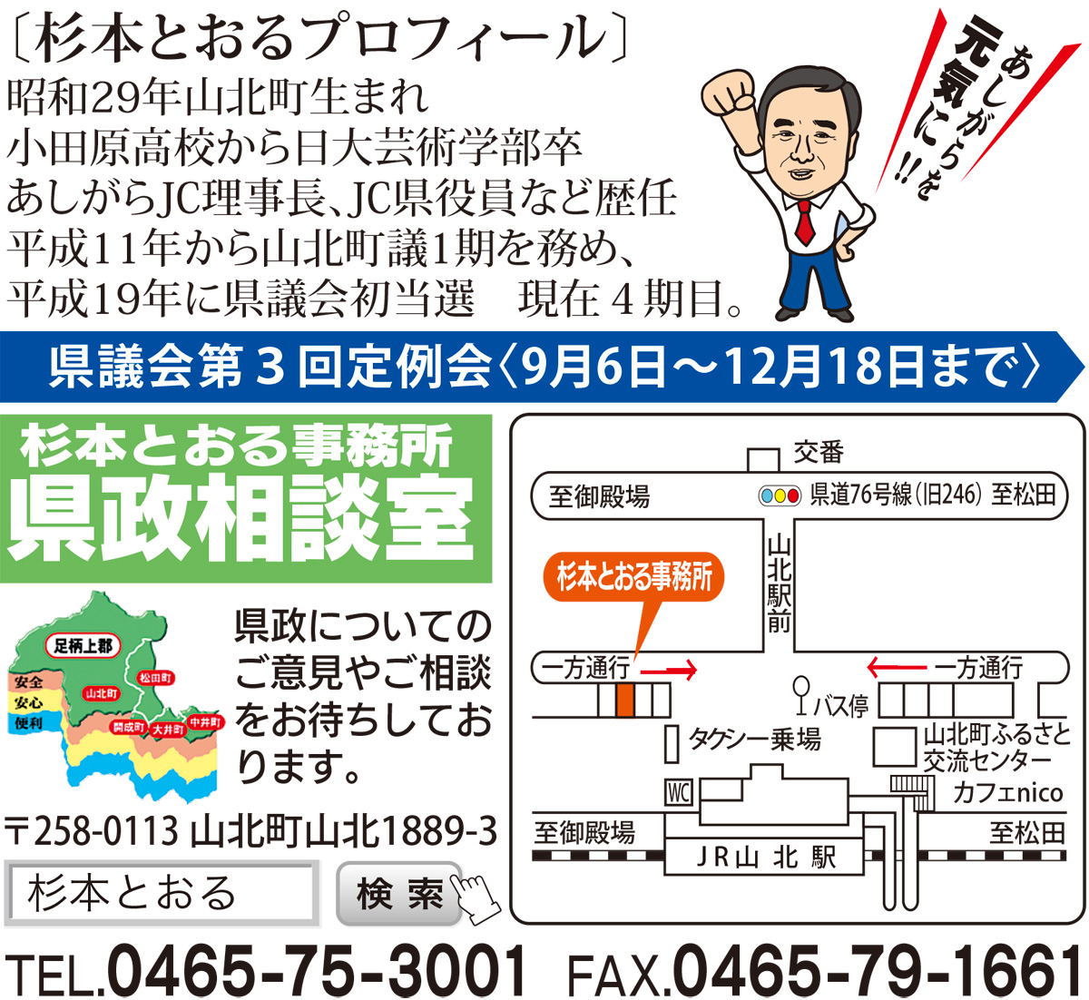 今回は、第2回定例会で決定した足柄上地域の具体的な事業について報告いたします。