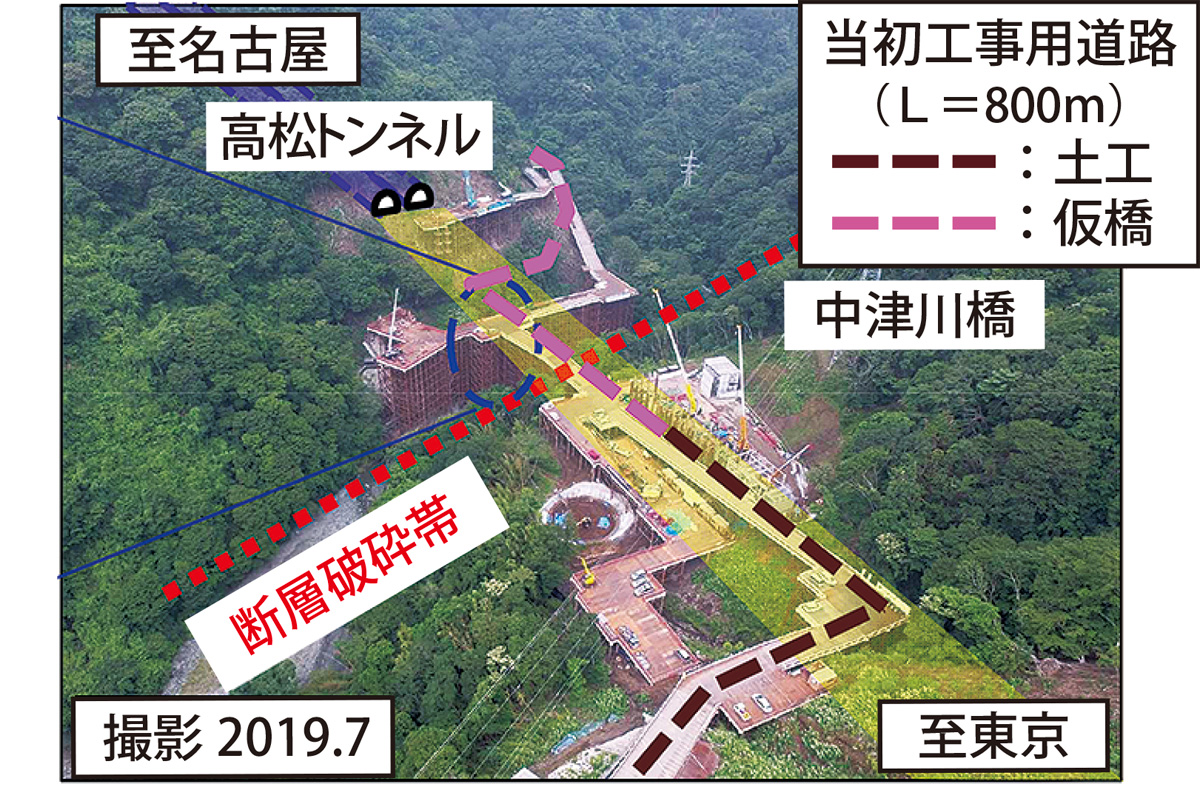 開通時期が遅れる要因となったのが、松田町域での施工計画見直しだ。のり面崩落に伴う工事用進入路のルート及び構造の見直し、想定以上の断層破砕帯(ずれの生じた断層面に沿ってできる岩石破砕部。一般的に軟弱で浸食、崩壊が進む)が確認され、橋梁構造形式の変更を余儀なくされた。