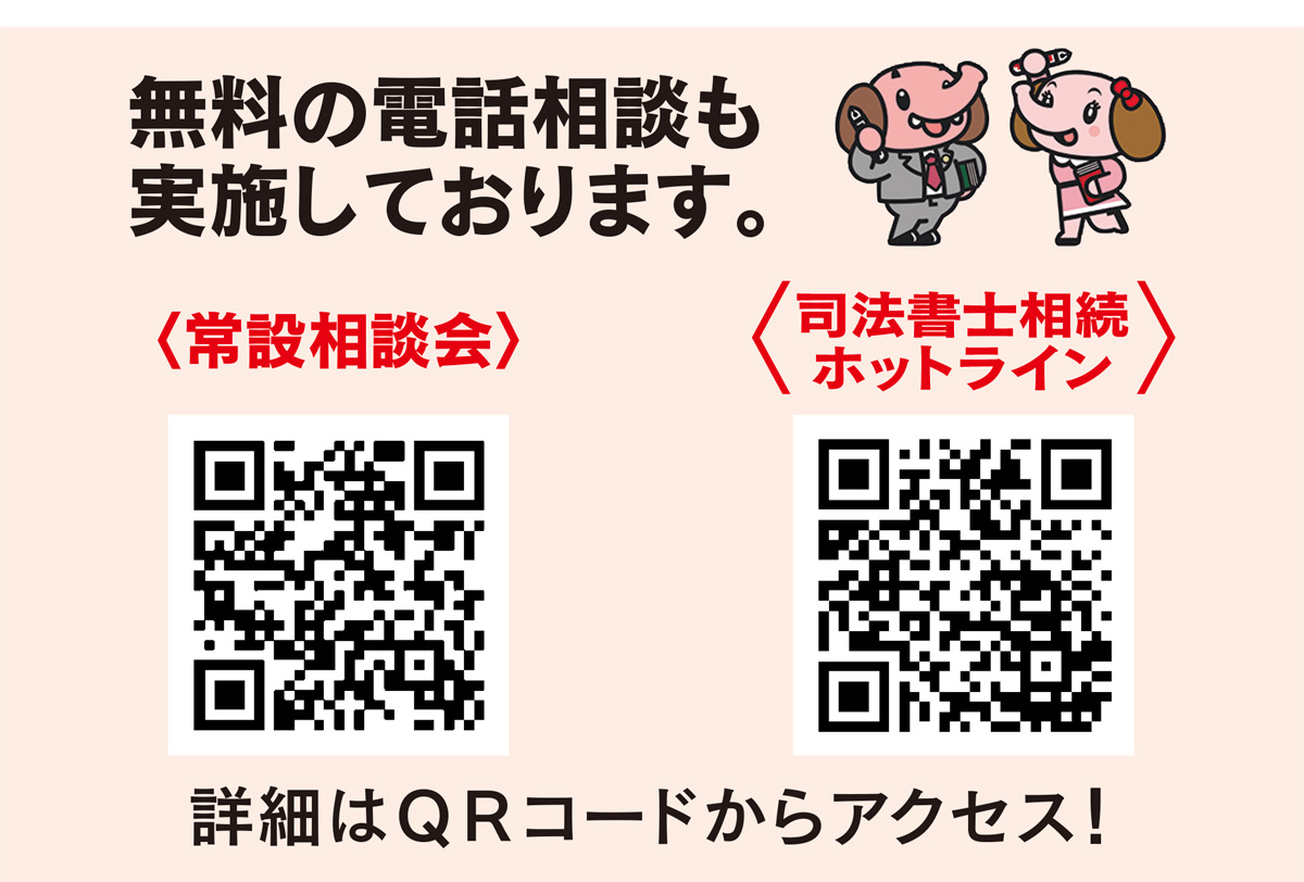 高度な法律知識で身近な問題に対応してくれる「あなたの街の身近な法律家」司法書士さんに、無料で相談できるチャンス。