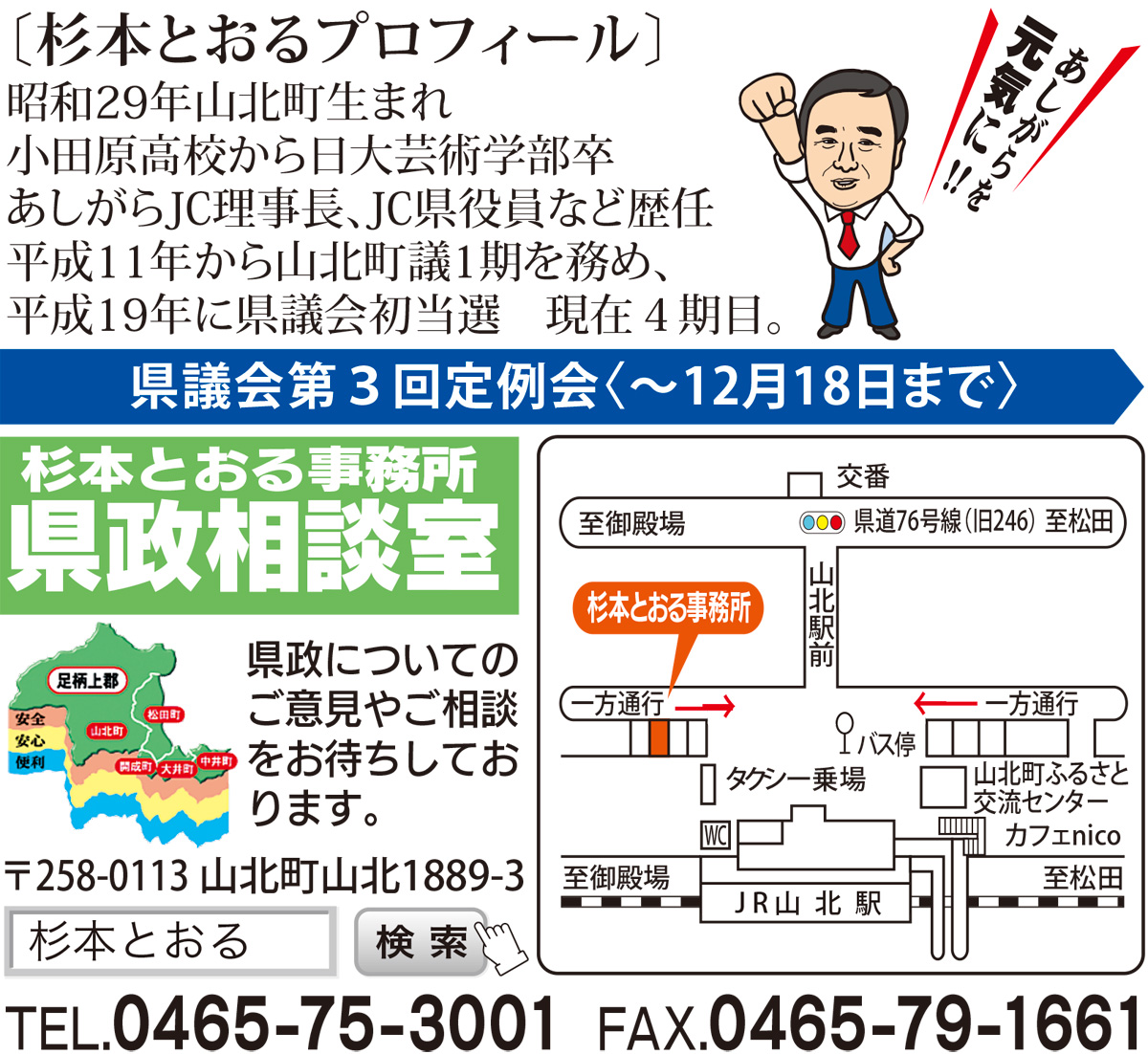 足柄上地域の各市町も様々な被害が発生しました。県を始め、市町も被害を受けた箇所の復旧に全力で対応しているところでありますが、被害箇所が多いため、復旧に向けては、時間がかかることが予想されます。被災されました方々は、ご不自由な生活を強いられていることと思いますが、県や市町は、全力で対応していますので、ご理解の程よろしくお願いいたします。