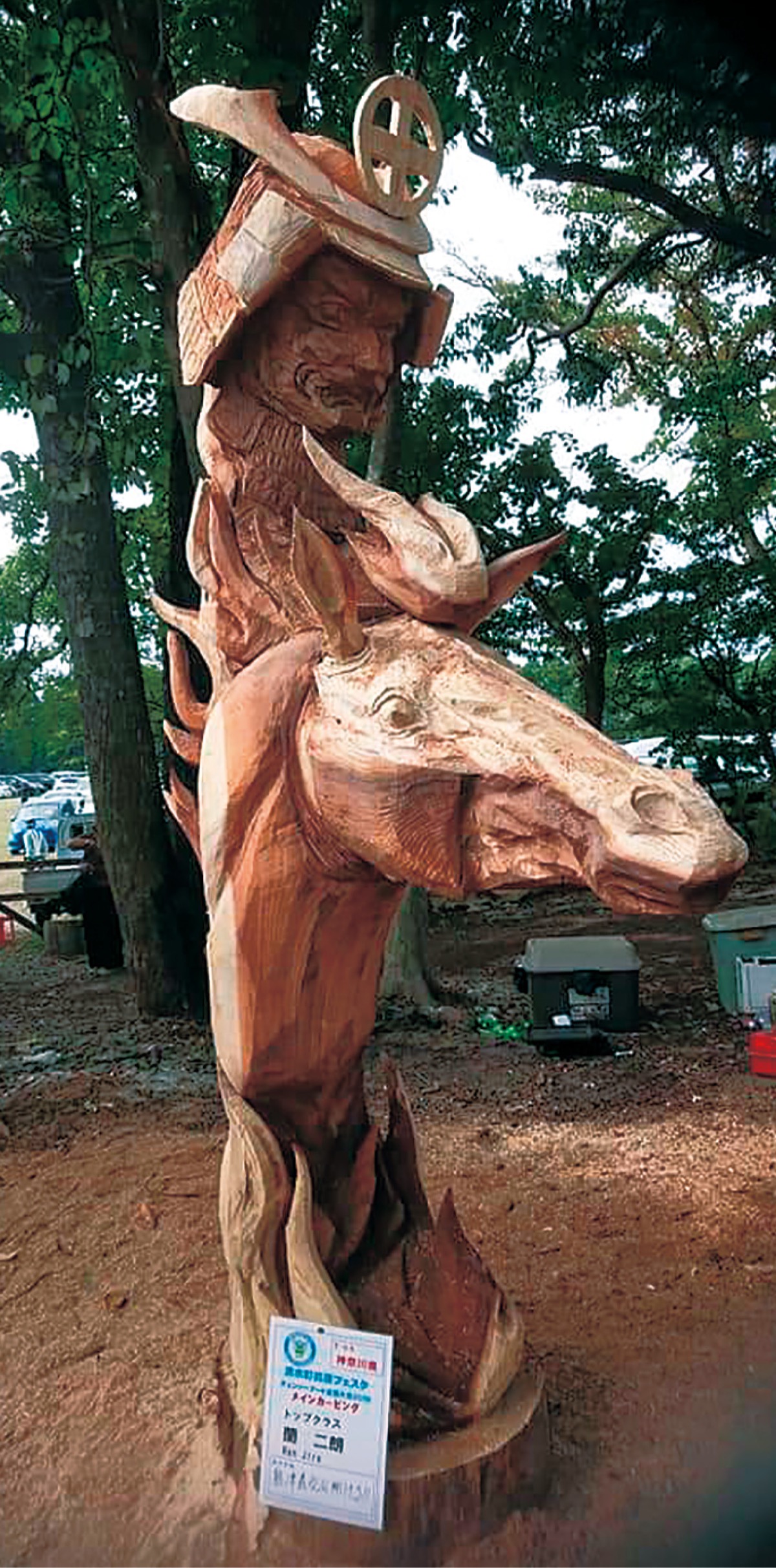 山北町の彫刻家、蘭二朗さん(44)がこのほど鹿児島県の湧水町高原フェスタで開かれた「チェーンソーアート全国大会2019」で優勝した。