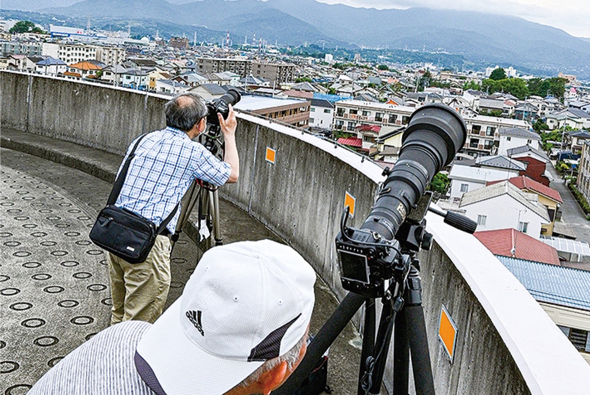 月が太陽の一部を隠す「部分日食」が日本各地で観測された6月21日、小田原市内でアマチュアカメラマンが天体ショーを撮影しようと空にレンズを向けた。