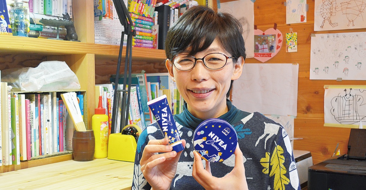 世界的にも有名なスキンケアクリームの「ニベア」。日本での販売を手掛けるニベア花王では、毎年オリジナルのイラストを施した「デザイン品」をリリースしており、2020年版に南足柄市在住の絵本作家・山田花菜さん(45)のイラストが採用された。