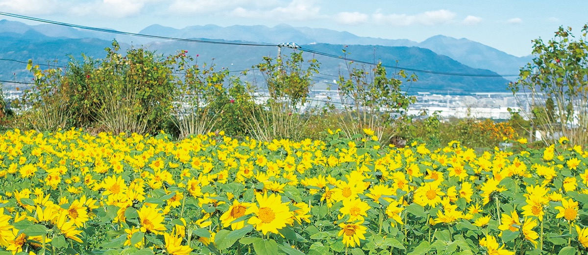 南足柄市にある「ユートピア農園」(塚原3008番地先)では、12月に入ってもヒマワリの花が咲いている=写真。