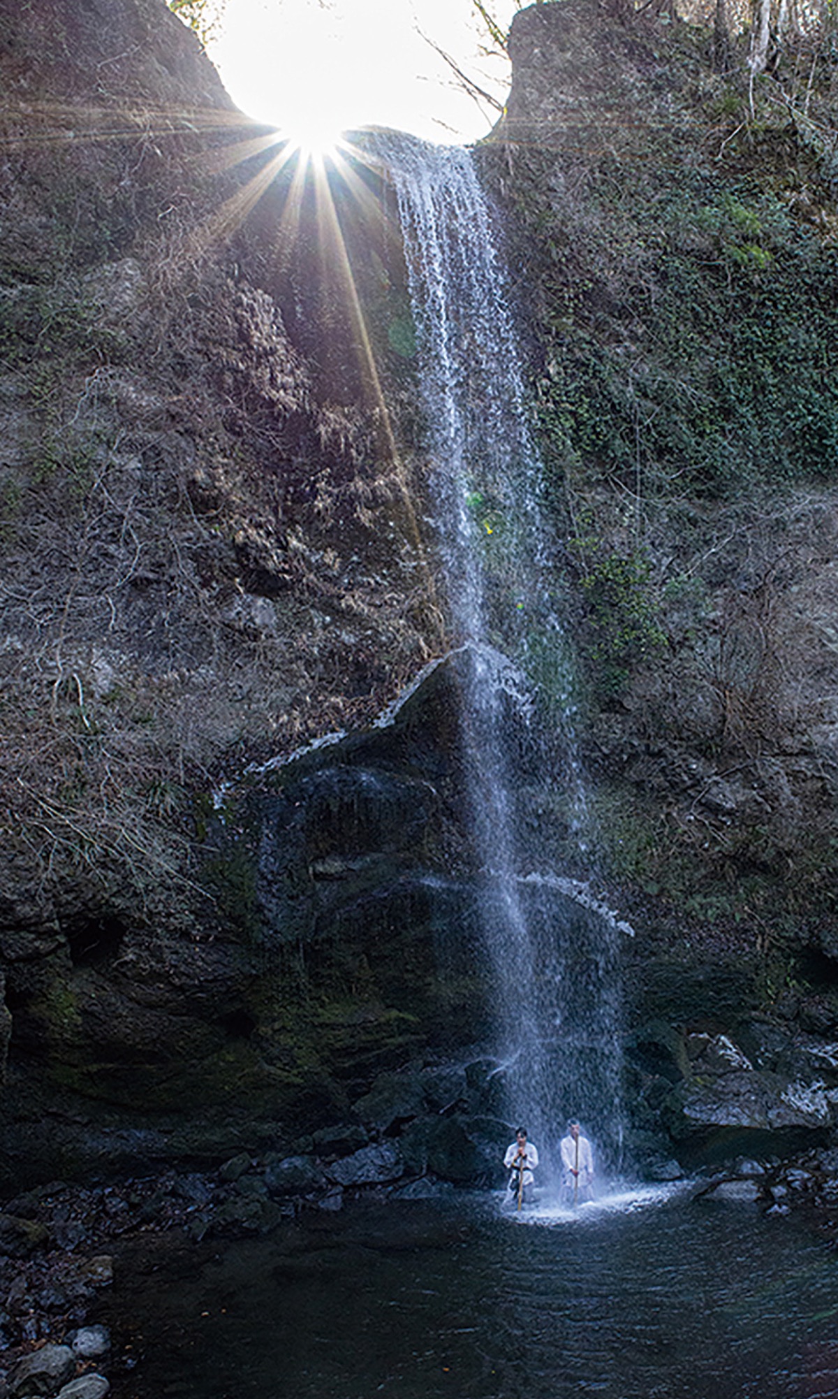 写真は1月15日の教室の撮影会で撮影。この日は11時半位から太陽が出現し、1時間ほど撮影したという。渋谷さんは「一年にこの時期だけ太陽が一番低い位置を通過することでみられる一コマ。それはまるで滝に夕日が沈むようです」と話している。南足柄市によれば、夕日に映える美しい姿からその名が付けられたという夕日の滝。正にそれが伝わる一枚だ。