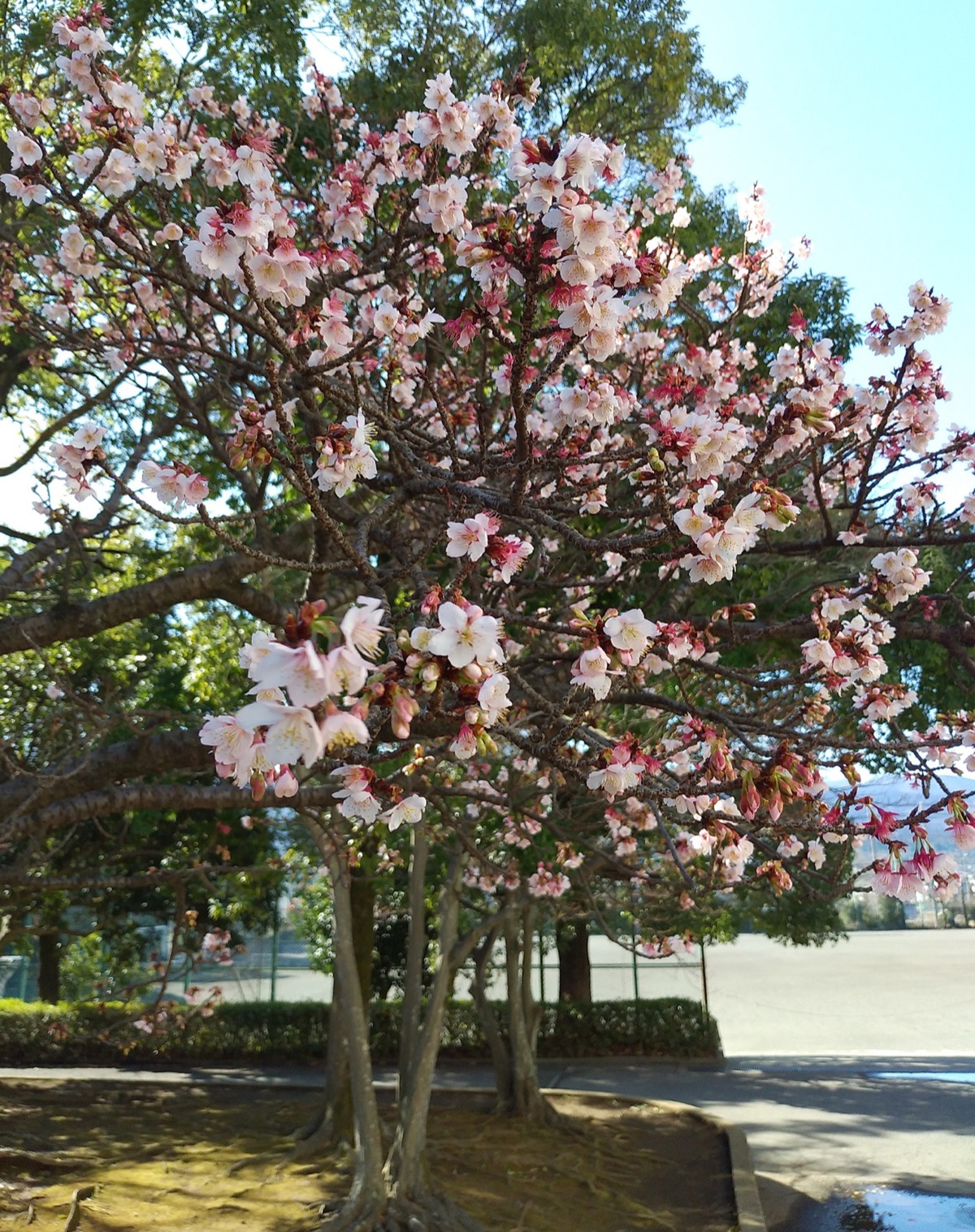 早咲きの桜として知られる「あたみ桜」とみられ、同センターによると1月中旬ころから花をつけはじめたという。