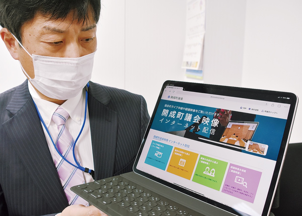 開成町がICT(情報通信技術)活用の一環で進めてきた「議会の映像配信」。4月中に町ホームページに専用サイトを開設、5月に録画配信、6月に生配信開始を目指す。