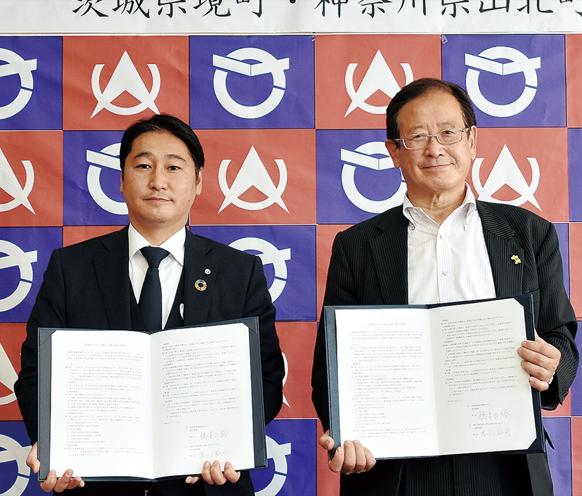 山北町(湯川裕司町長)と茨城県境町(橋本正裕町長)の両町は5月25日、「災害時における相互応援に関する協定」を締結した。山北町にとって災害対応に関連して他地域と協定を締結するのは、静岡県小山町に続き2例目。物資提供や被災者の受け入れなどに関する内容で、大規模災害発生時の住民の安心・安全の向上を図る。