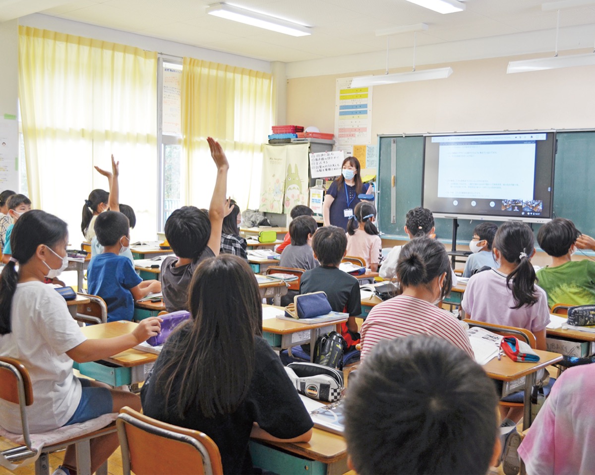 画面を通じての質疑応答では児童からの「自動車1台作るのにいくらかかるの」「未来の自動車の性能は」「検査で不合格になった車はどうなるの」などの質問に担当者は丁寧に答えていた。参加した児童は「映像を見ながらだったので分かりやすかった」と話していた。渡辺校長は「多くの人が携わりその努力で車ができていることを学んでほしい」と話した。